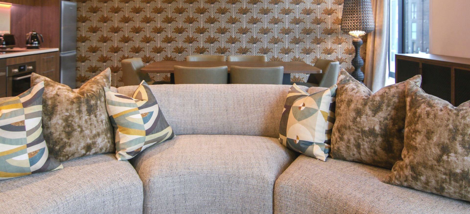 - Inviting soft furnishings throughout the living areas